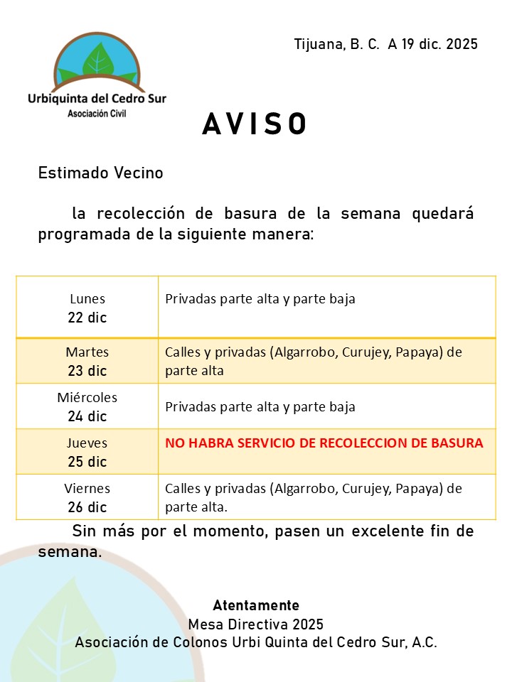 Aviso: Recolección de basura