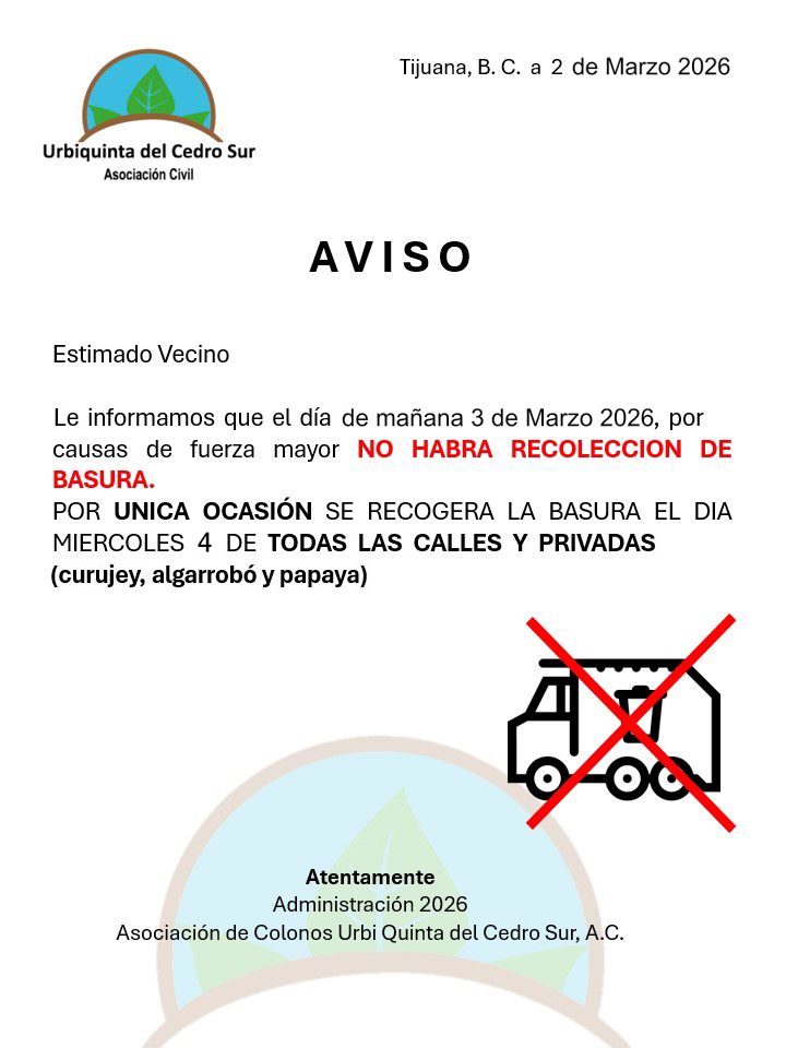 Aviso: Recolección de basura 03 de marzo